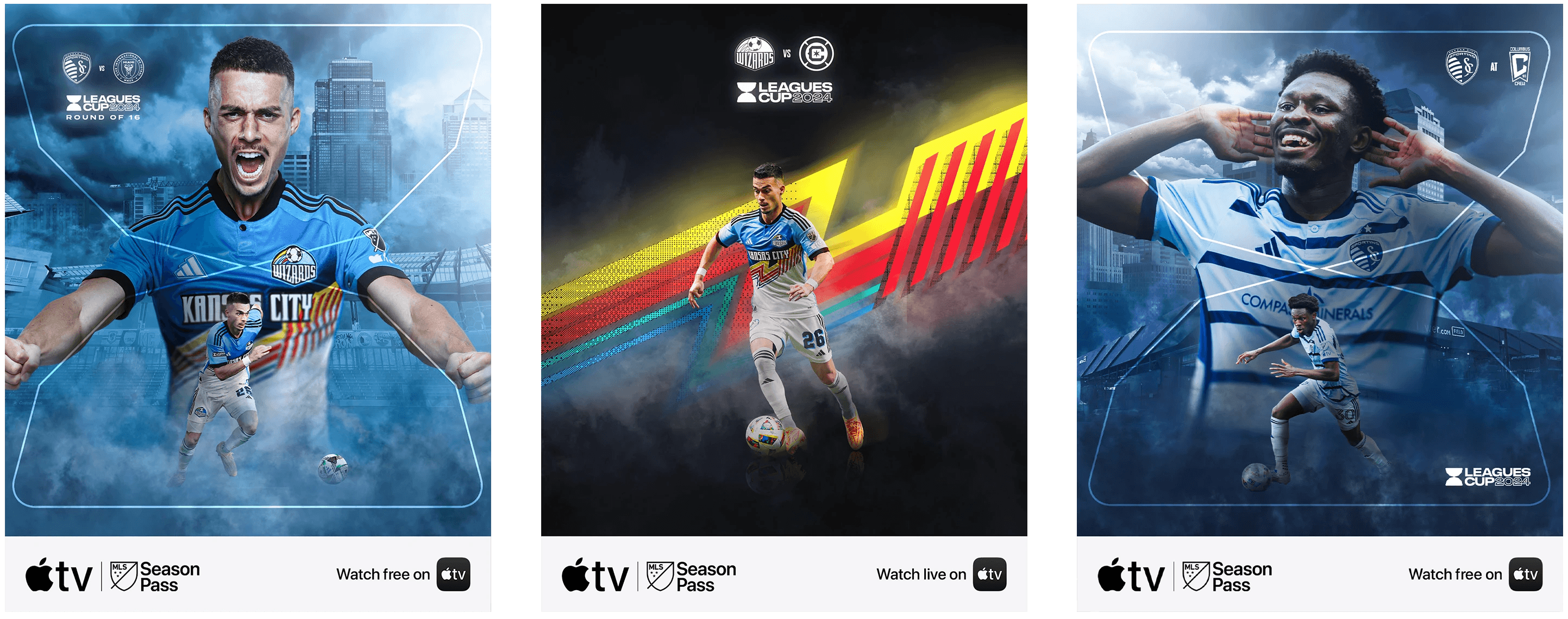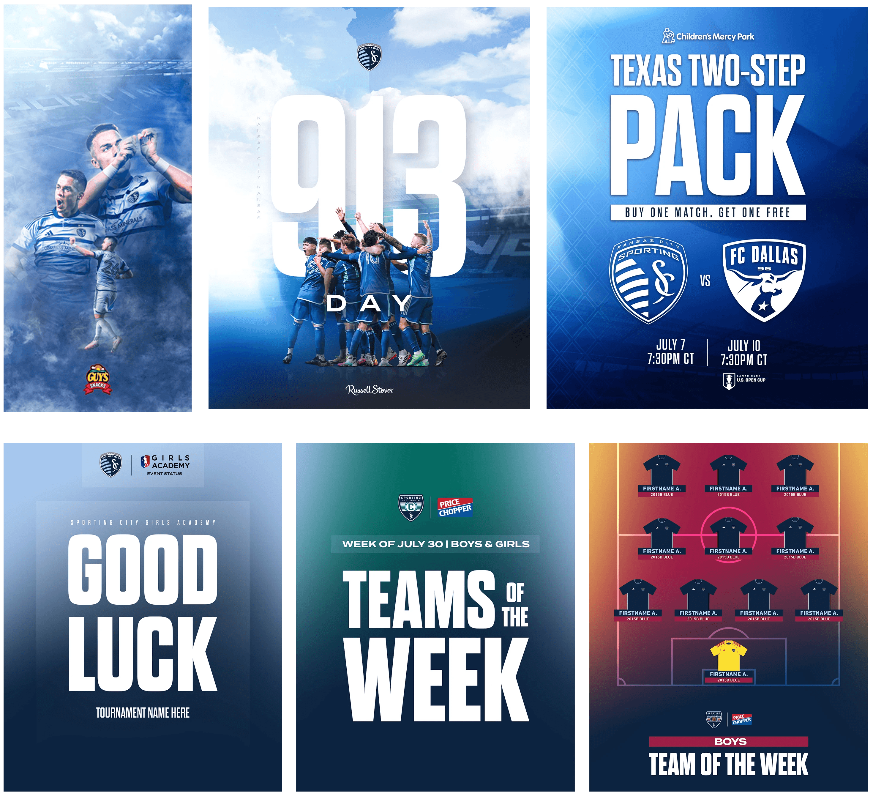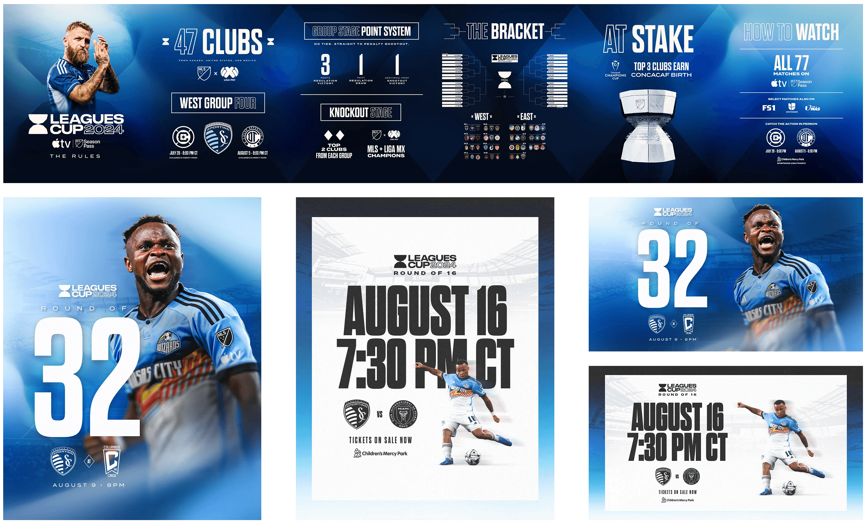 The look of the 2024 Matchday Hero Graphics were enviornmental manipulation. When building out the graphics, my thought process was to capture the intensity and precision Sporting plays with. I chose to do this through lighting and color correction, as well as with strong compositions that contrast the backgrounds. My graphics helped fans get excited for game days, especially since I highlighted the “heroes” of the team.